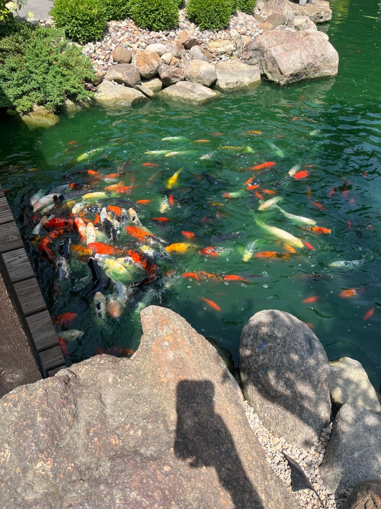 Do you have an arboretum with flowers and koi fish (carp), that can be fed? I’d love to hear all about it, if so ❤️